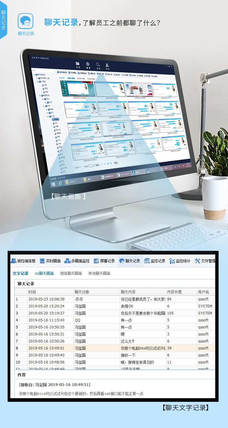 包含所有监控版功能 额外增加屏幕录像监控,可设定开机后即对电脑屏幕录像,或设定录像时机